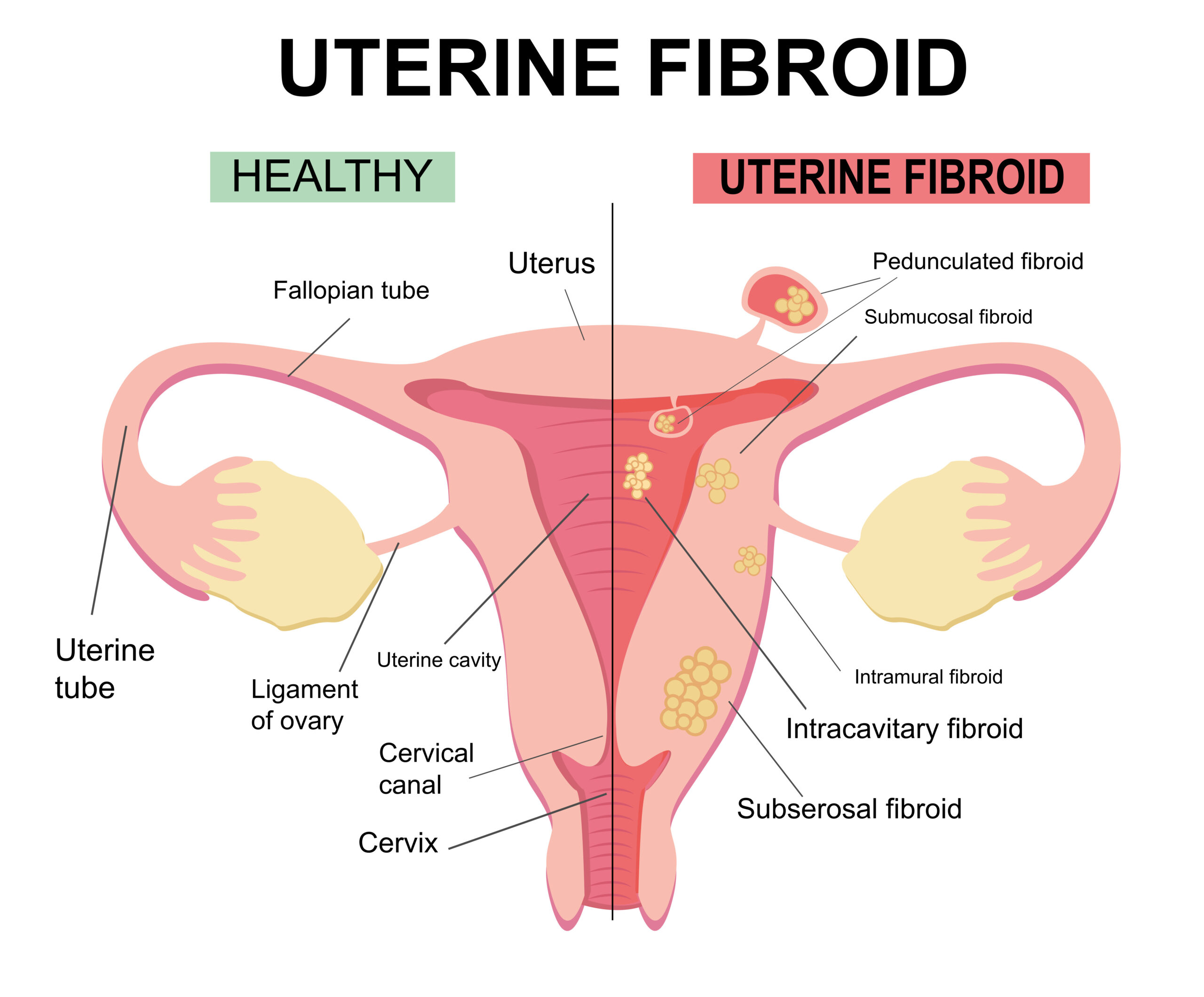 Uterine fibroids (also called leiomyomas ) are common, noncancerous growths made of smoot h muscle that develop in or on the uterus. They can form within the uterine wall, inside the uterine cavity, or on the outer surface of the uterus. Fibroids most often appear during a woman’s reproductive years and vary widely in size, number, and location.